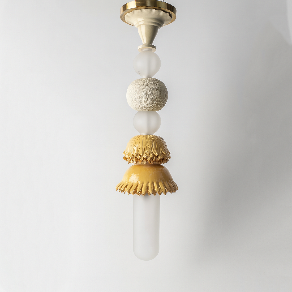 A cascade of ceramic forms crafted by hand, this chandelier carries the grace of falling clay. It transforms ceilings into living art, radiating warmth with every glow. It's light, flowing like nature's rhythm.