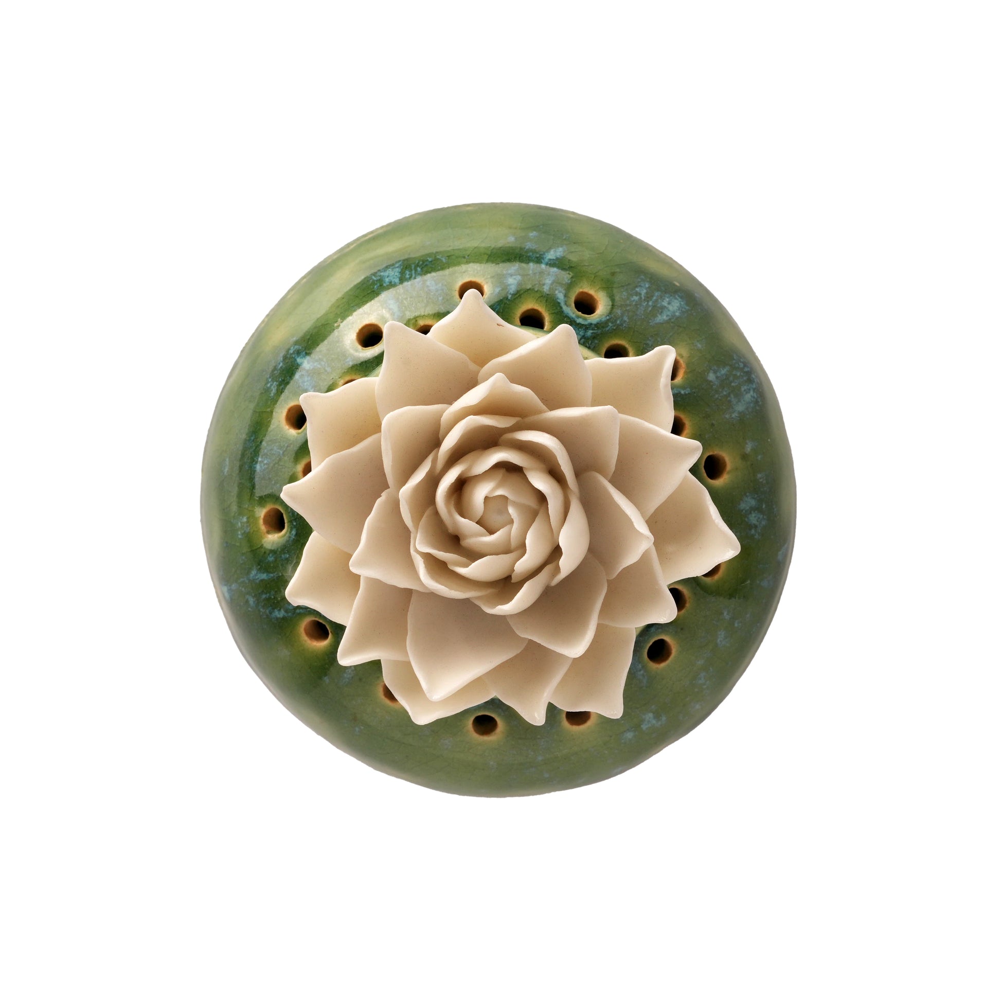 The eco-friendly pottery piece blends artisanal beauty with divine fragrance.