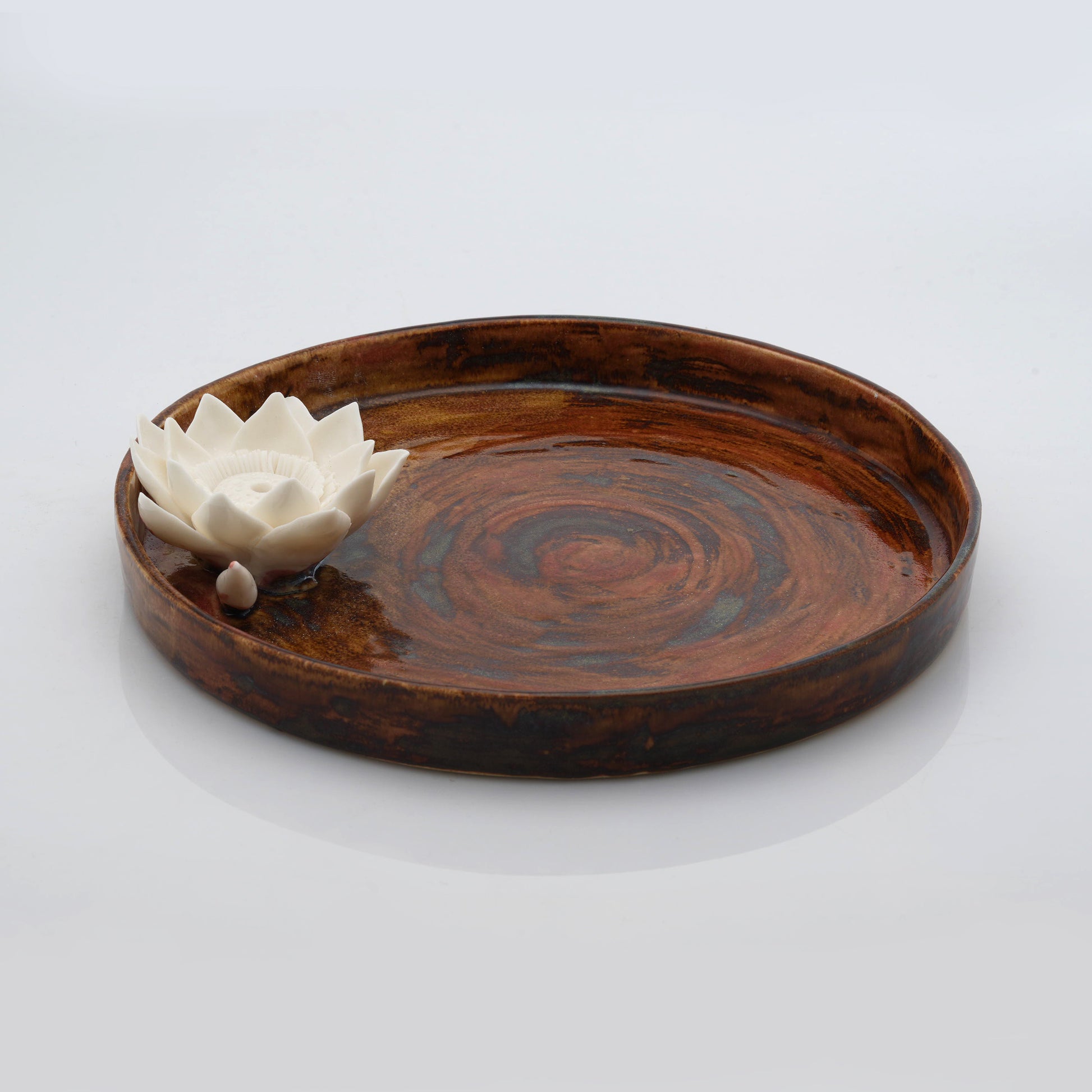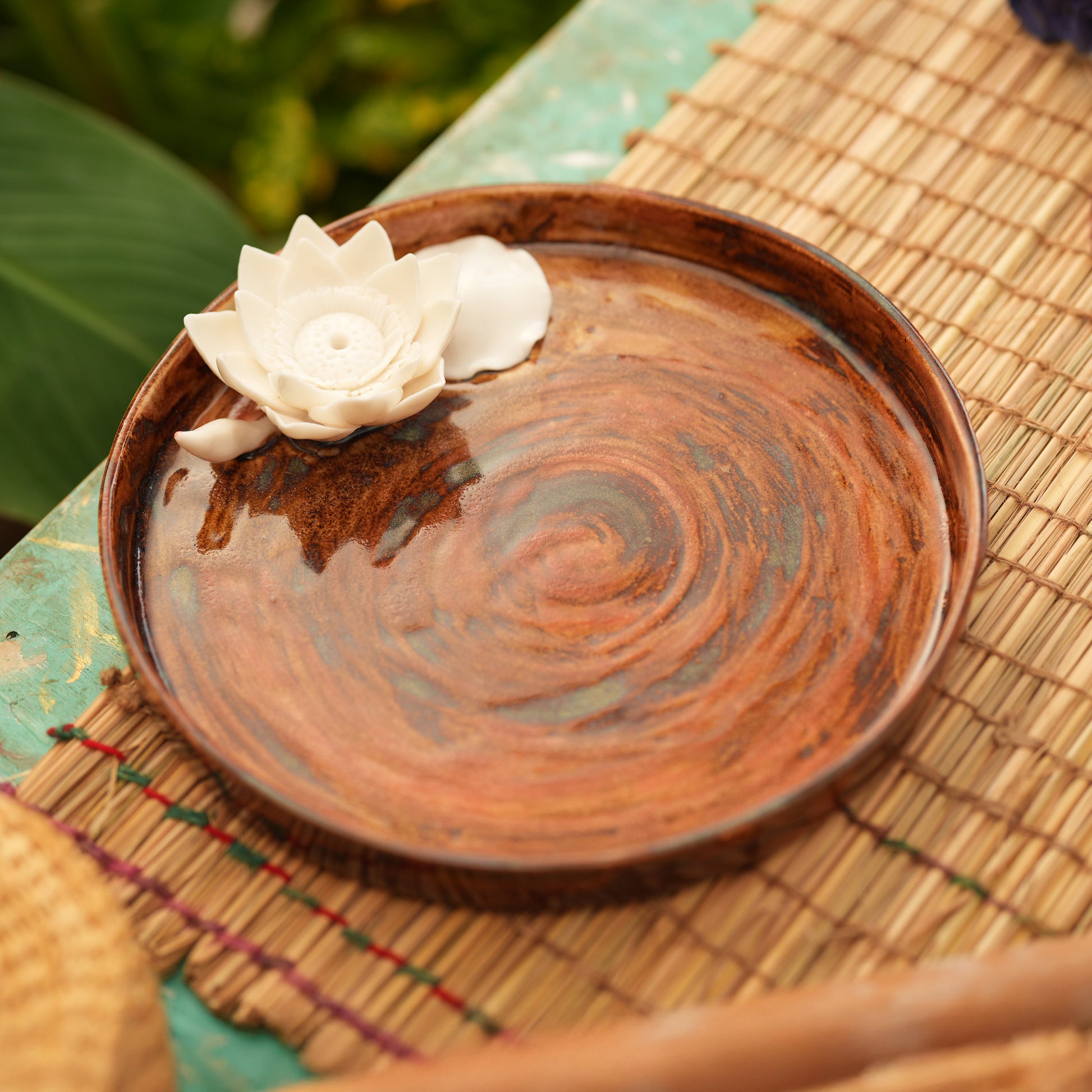 Rooted in spiritual symbolism, this circular pooja thali features a serene lotus, known to represent purity and enlightenment. Crafted to enrich your rituals, it blends traditional aesthetics with utility.