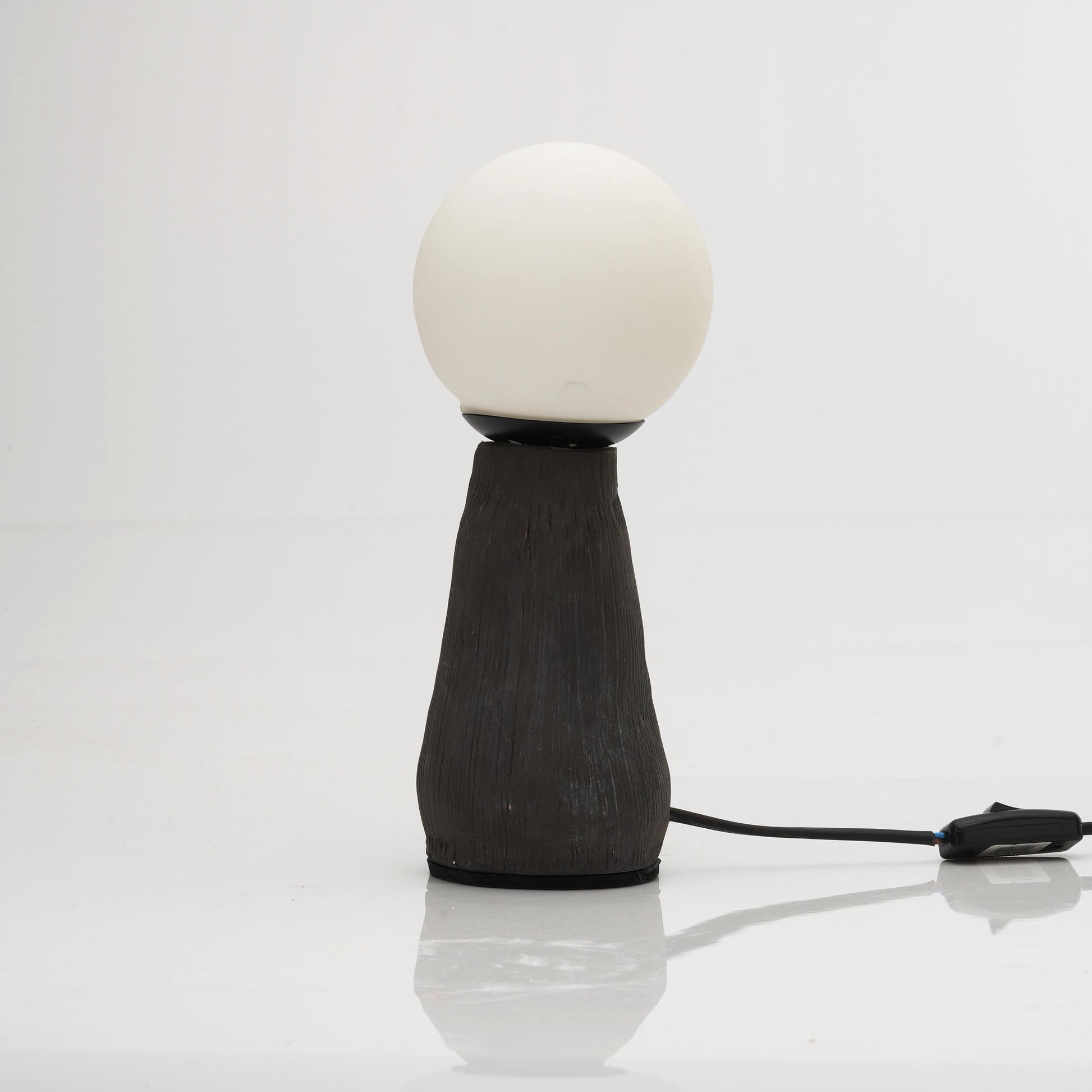 Inspired by the soft roundness of the moon, this lamp casts a soothing glow. Hand-shaped textures add depth, creating an atmosphere of enchantment.