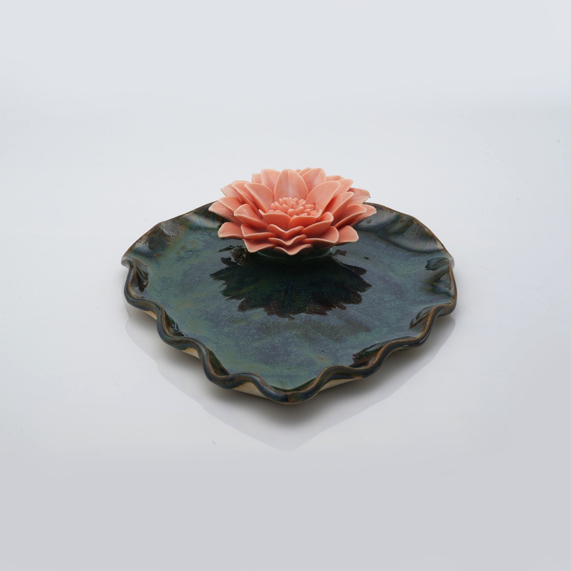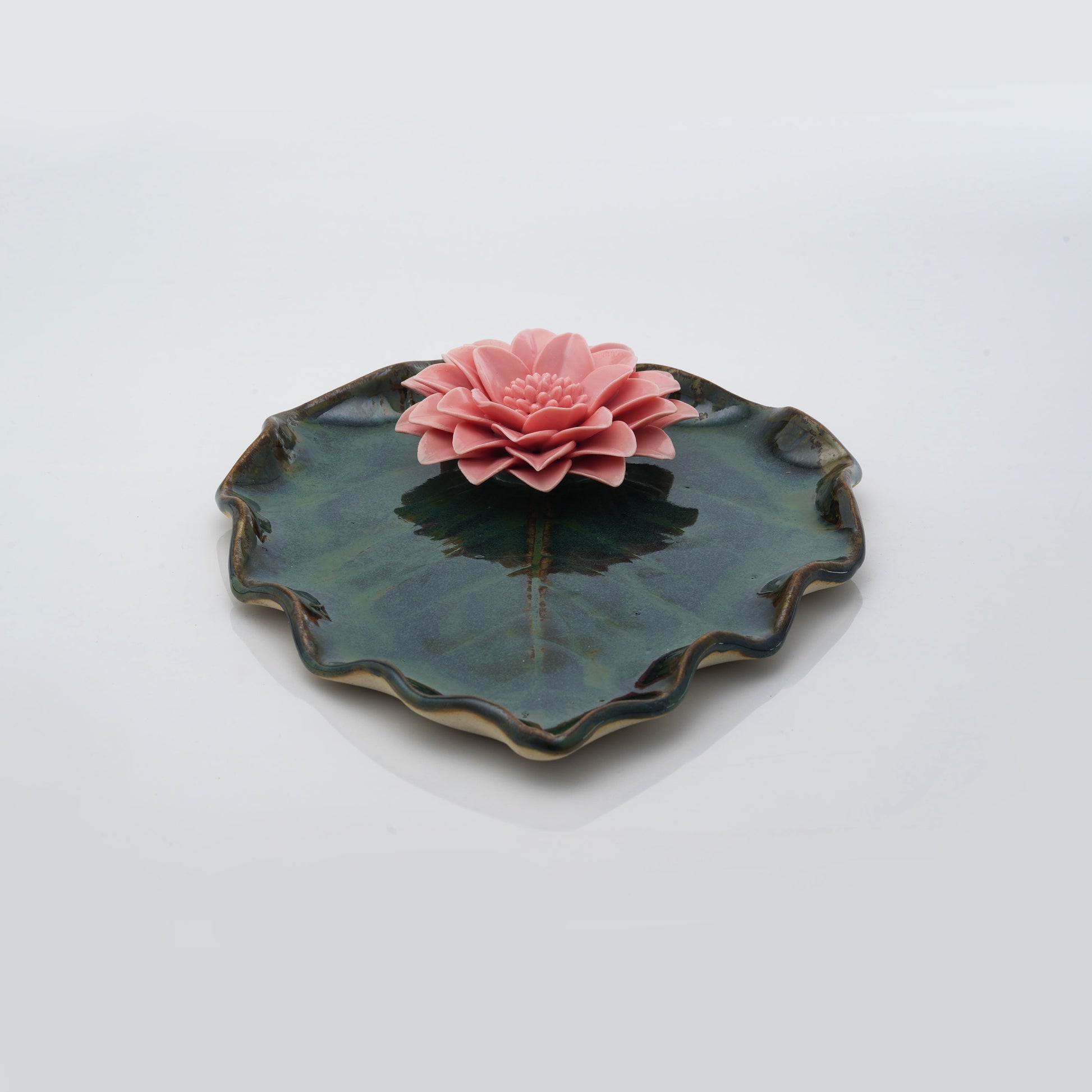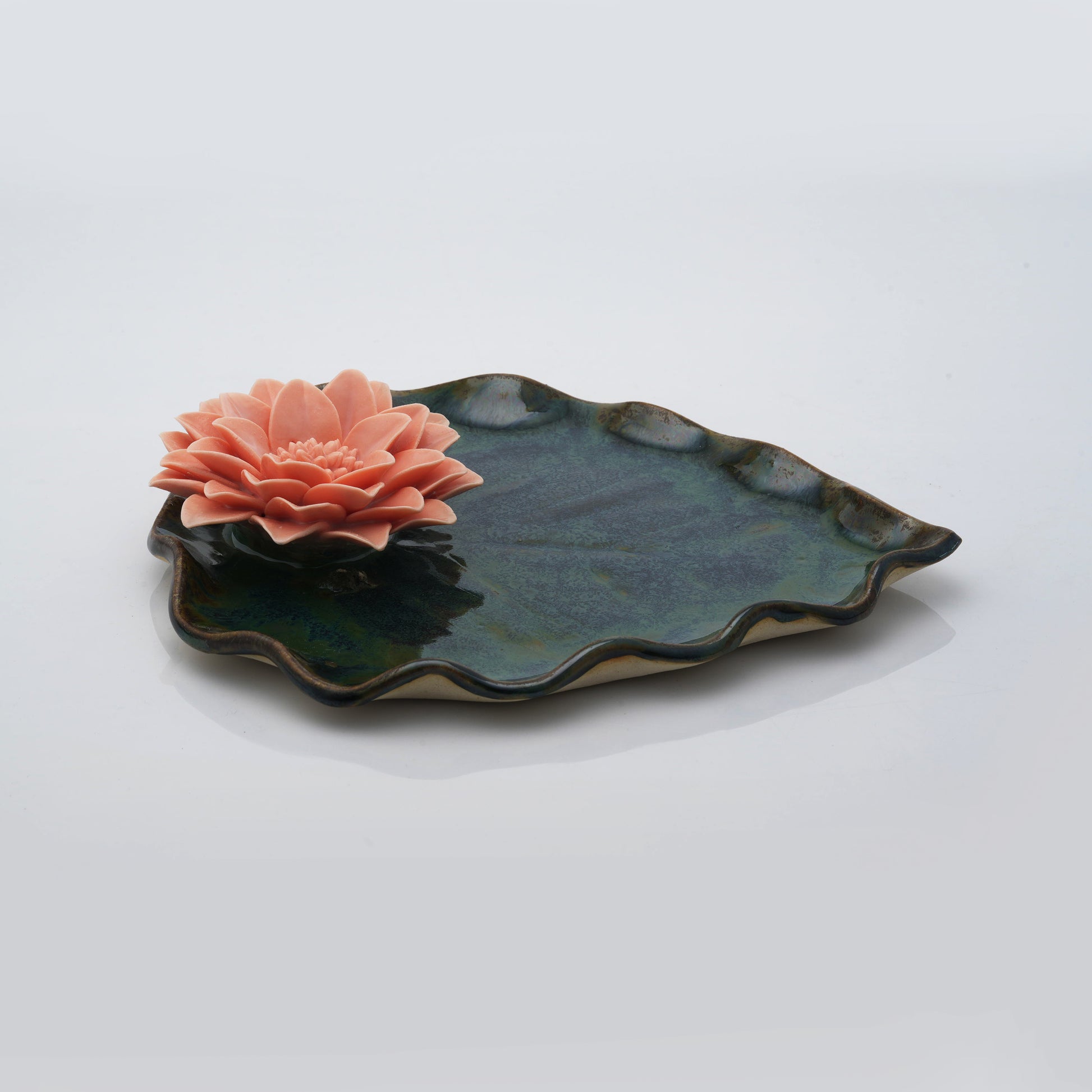 Vibrant green with a handcrafted poinsettia, the ceramic accessory adds an artistic touch to your dining.