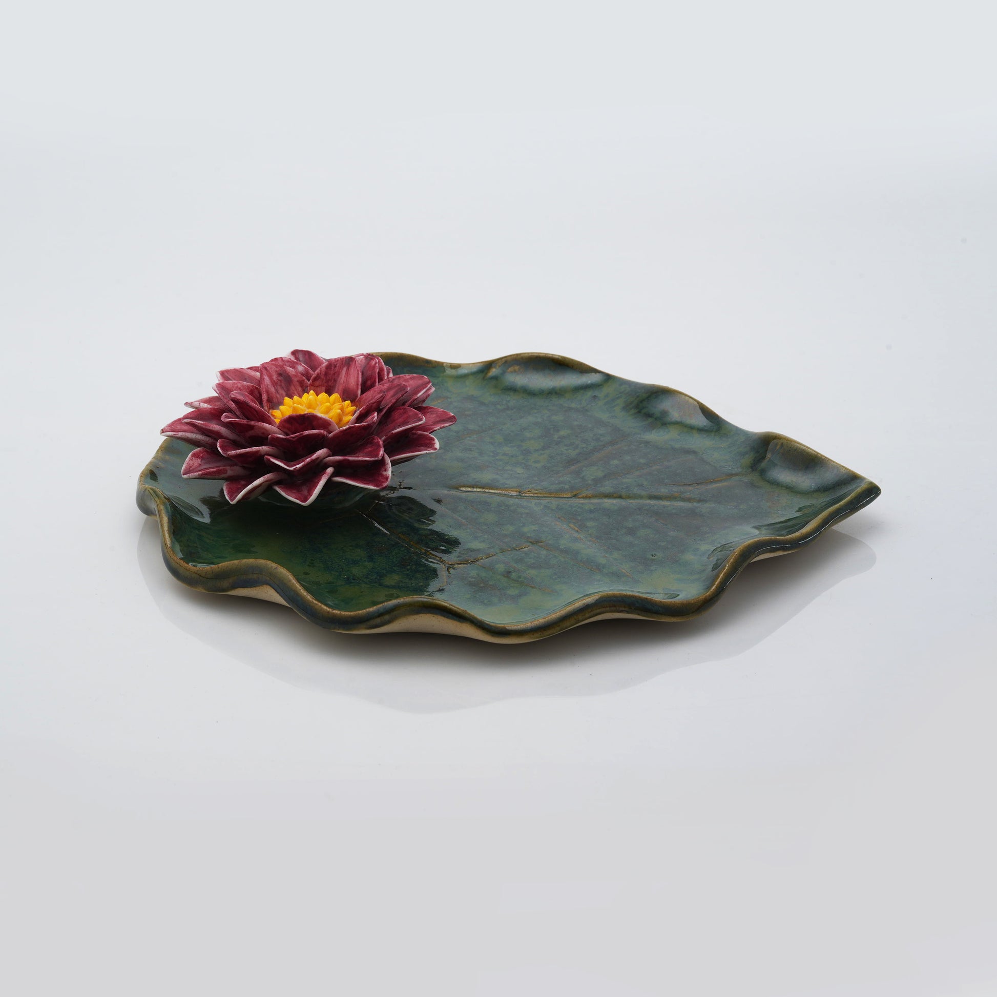 Design: Leaf-shaped ceramic plate with poinsettia accent