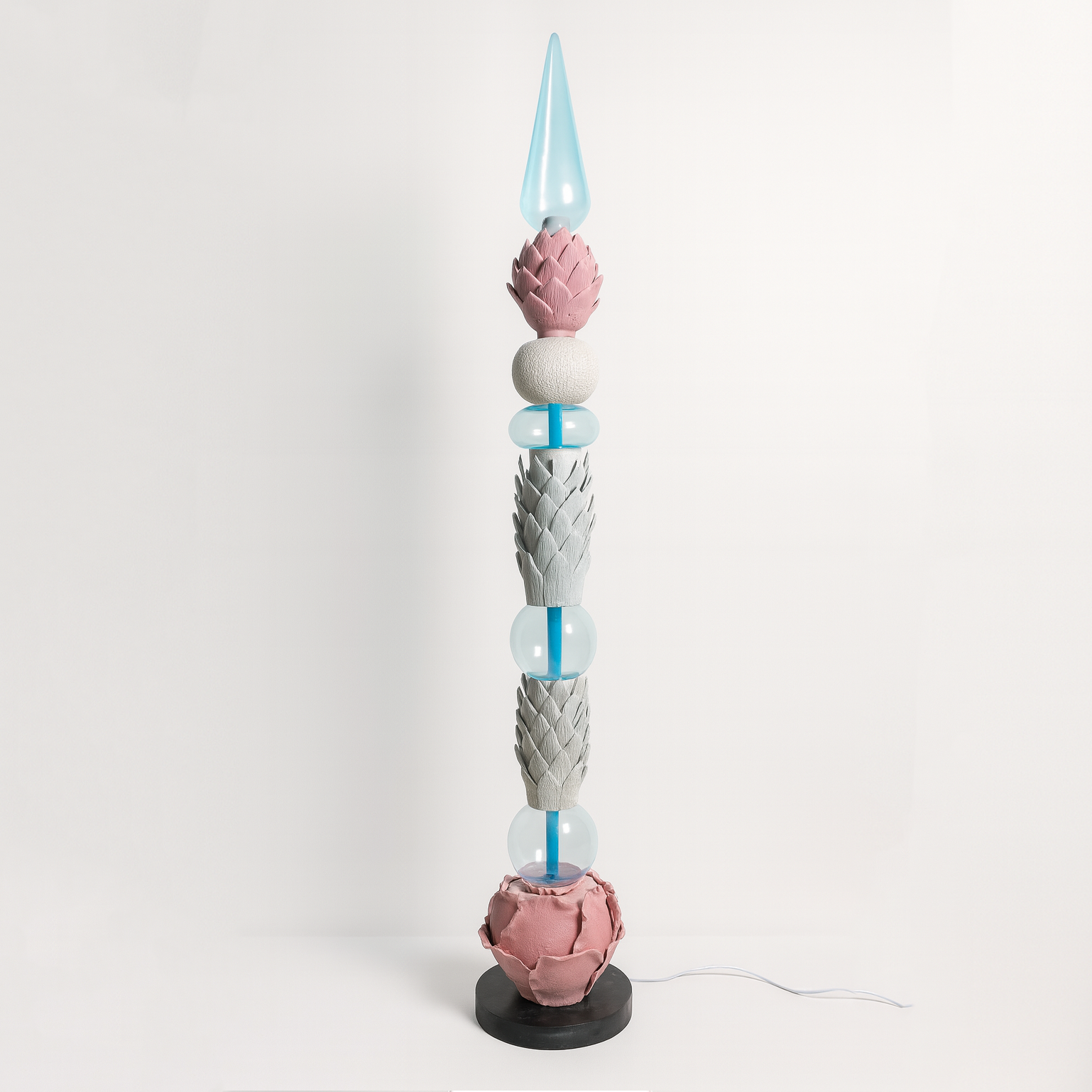 Standing tall, this totem gathers light into its sculpted form, casting a serene glow that anchors the room. Both art and illumination bring quiet strength into living spaces. Light, rising through clay.